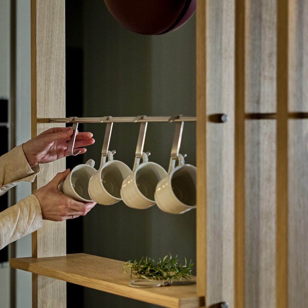 Fügen Sie Regale, Spiegel und funktionale Elemente hinzu, um sich an die Nutzung des Raums anzupassen. Alle Zubehörteile sind so konzipiert, dass sie direkt mit dem Embrace-System integriert werden.