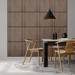 Das Akupanel kann für die Gestaltung schöner Lamellenwände und -decken verwendet werden, die dem Raum ein modernes Aussehen verleihen. Das Paneel ist schalldämpfend und beseitigt den Nachhall im Raum, was die Akustik im Raum bedeutend verbessert. Das Paneel kann horizontal und vertikal montiert werden.