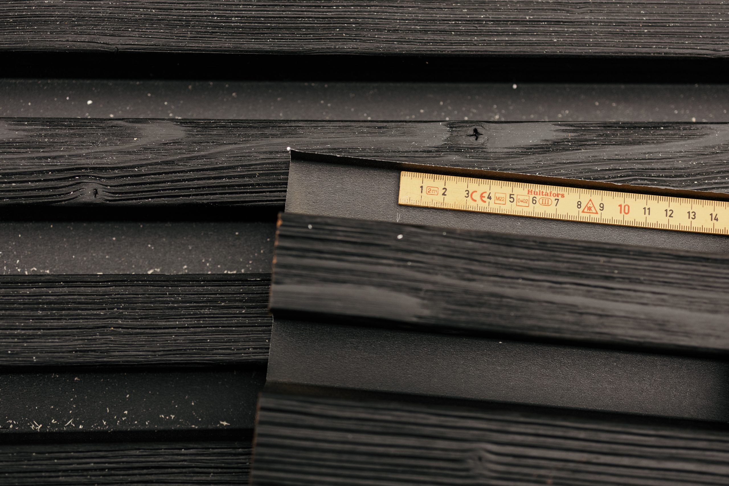 Die Holzlatten bestehen aus thermisch behandelter Fichte, entweder naturbelassen oder lackiert.