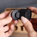 Jede Box enthält 3 Nylonhalterungen und ein Montagewerkzeug aus schwarz lackierter Buche.