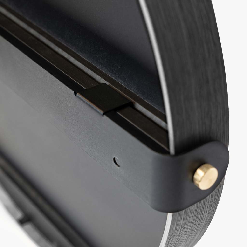 Wähle zwischen einem Rahmen in natürlicher Eiche oder schwarzem Holzfurnier – passend zu deinem Stil. Jeder Spiegel wird mit Fingerschrauben in Schwarz und Messing geliefert, damit du den Look wählen kannst, der am besten in dein Zuhause passt.