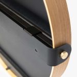 Der WoodUpp Spiegel besteht aus Ø60 cm hochwertigem Spiegelglas mit einem robusten Rahmen aus Schichtholz, wahlweise in natürlicher Eiche oder schwarzem Furnier. Die Gesamtbreite inklusive der seitlichen Fingerschrauben beträgt 62,8 cm.