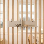 Hergestellt aus Edelstahl und hochwertig pulverbeschichtetem Stahl, fügt es sich nahtlos in die Umarmungsstruktur ein und sorgt dafür, dass alles offen, ruhig und durchdacht bleibt.