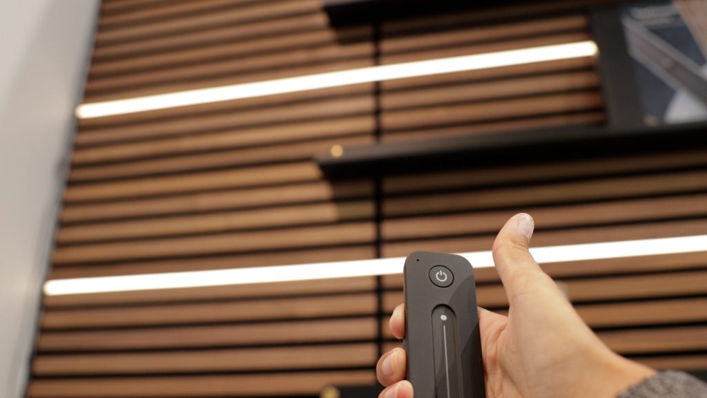 Unsere neuen LED-Streifen sind speziell für WoodUpp Akustikpaneelen konzipiert, um eine perfekte Passform und verbesserte Funktionalität zu gewährleisten. Das flexible Silikonmaterial mit mattem Finish ermöglicht eine mühelose Installation – einfach den Streifen in die Paneelrillen drücken, ohne Werkzeuge zu benötigen. Das matte Finish passt zur Farbe unseres schwarzer Filzes und macht die LED-Streifen fast unsichtbar, wenn sie ausgeschaltet sind.